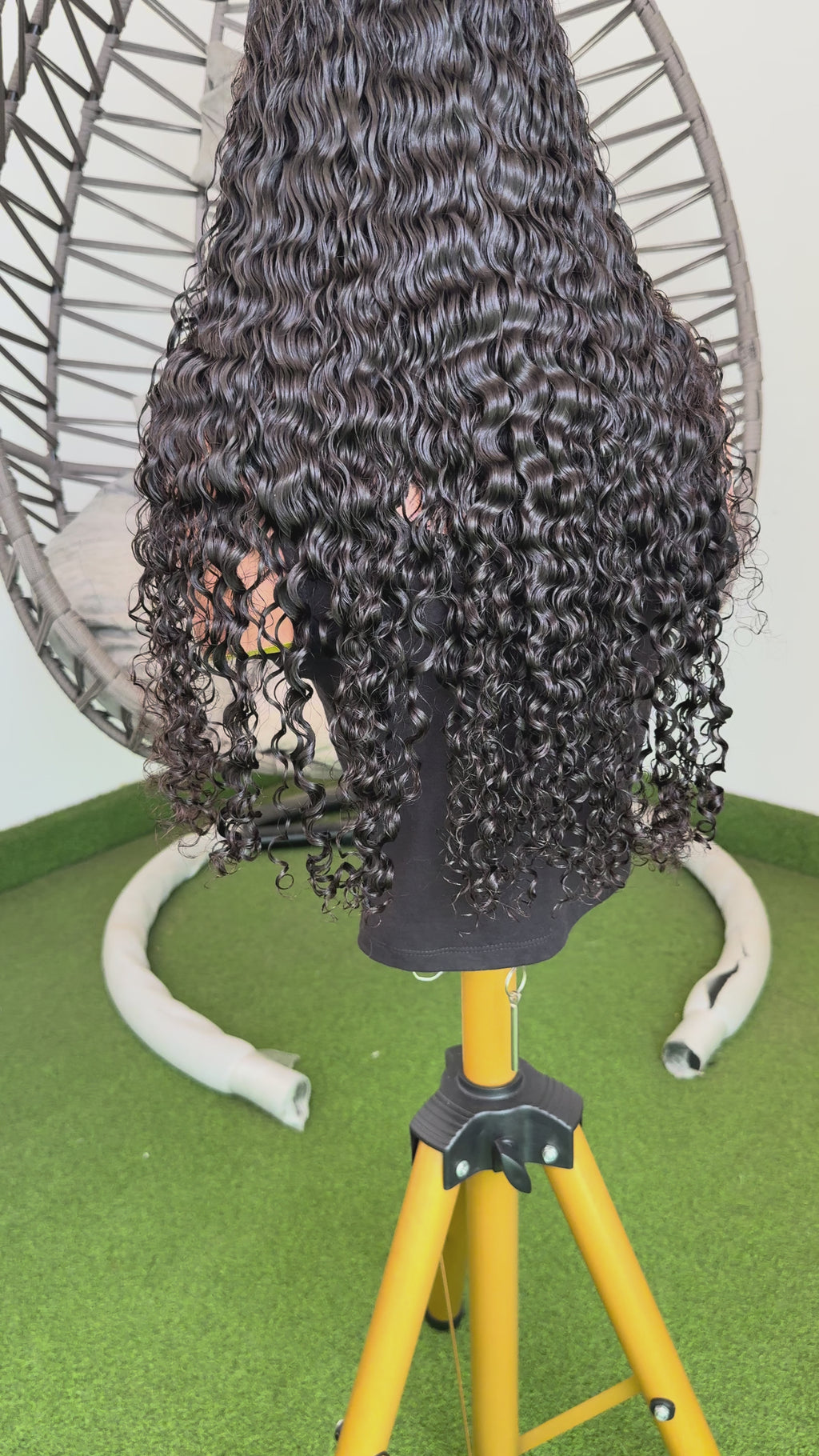 This high quality curly hair is made up of 3 bundles of 30 inches curly bundles and a 13 by 6 HD lace frontal.